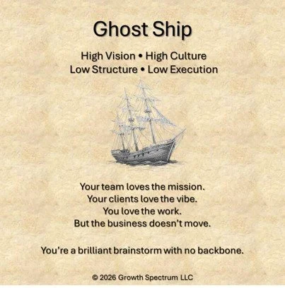 The Ghost Ship is full of smart, passionate people who care deeply about the mission… but can’t seem to turn that mission into consistent results. You’ll hear things like: